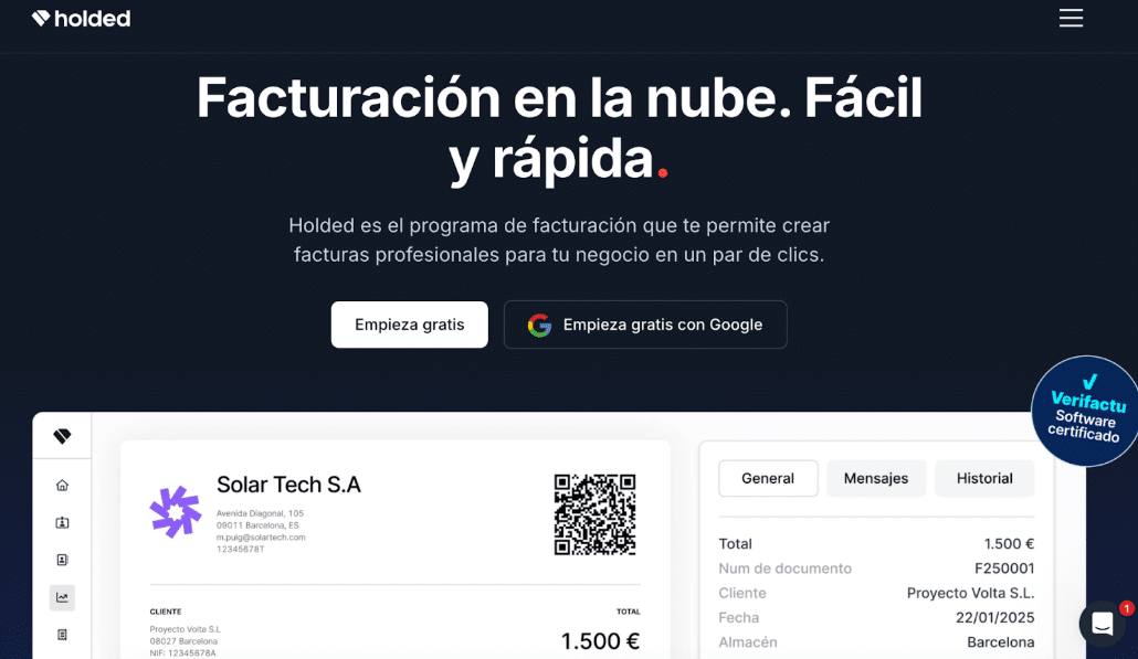 Holded es una plataforma de facturación en la nube que ofrece, además, un ERP completo pensado para pequeñas y medianas empresas que buscan centralizar la gestión de su negocio en una sola herramienta.