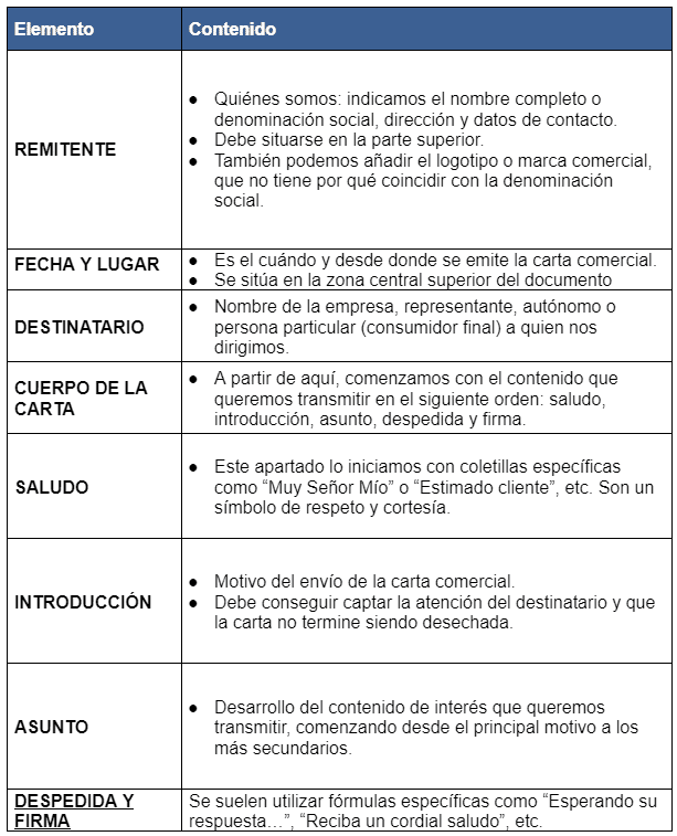 Estructura de una carta comercial