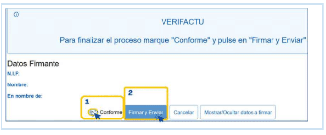 - Si usas Verifactu, el programa enviará los datos a la Agencia Tributaria en tiempo real sin que tengas que hacer nada.
