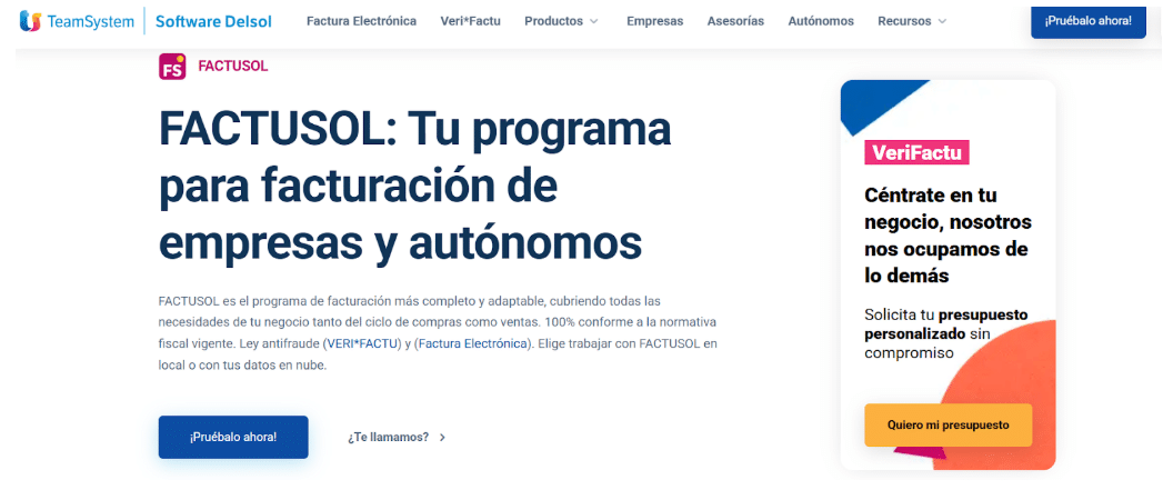 Factusol es un programa de facturación para empresas, que ya está adaptado a los nuevos retos de la normativa Verifactu.