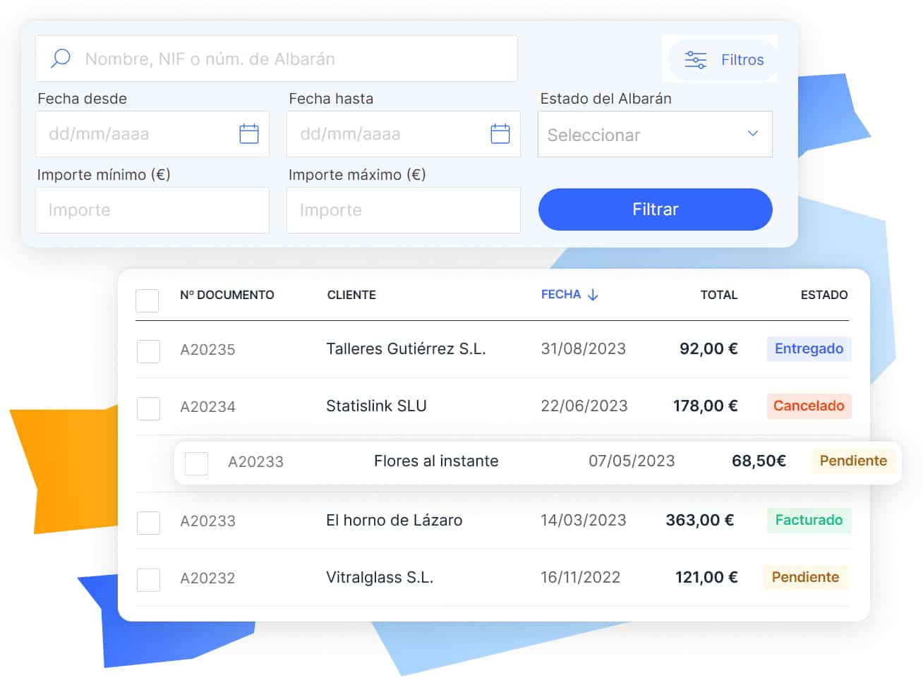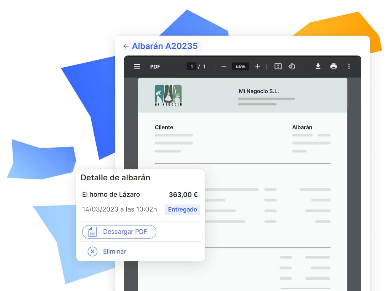 Descarga cada albarán en PDF en pocos segundos.