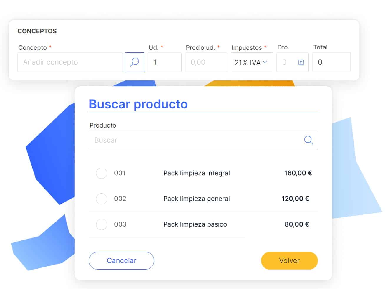 Desde el propio albarán podrás añadir los productos que hayas guardado desde el gestor de productos en un solo clic.