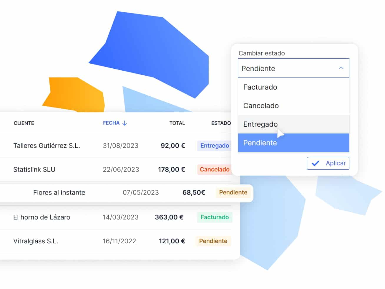 Desde el panel de albaranes puedes controlar y marcar el estado de cada albarán creado.